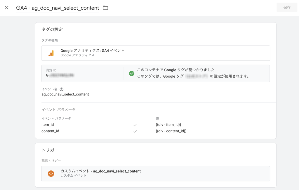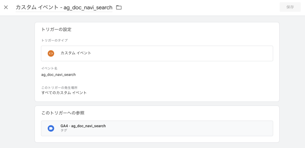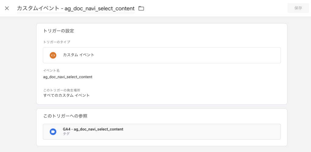 カスタム イベント -ag_doc_navi_select_content - 保存