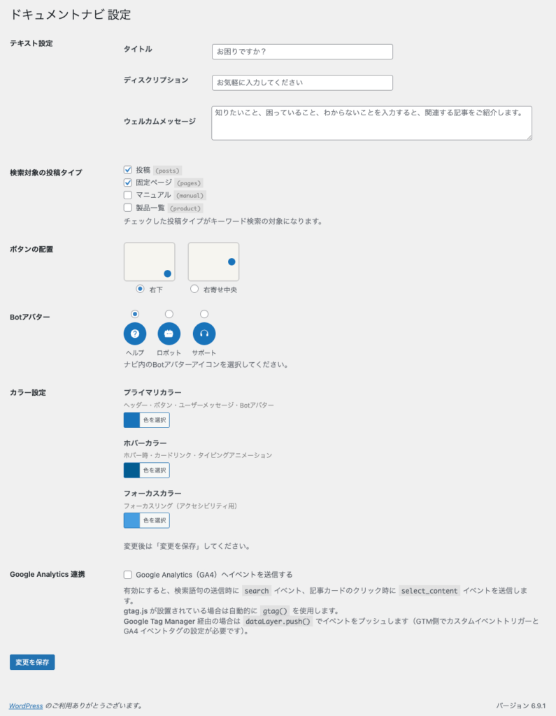 | GA4連携(上級者向け) | 検索イベント・記事クリックイベントを自動送信 |